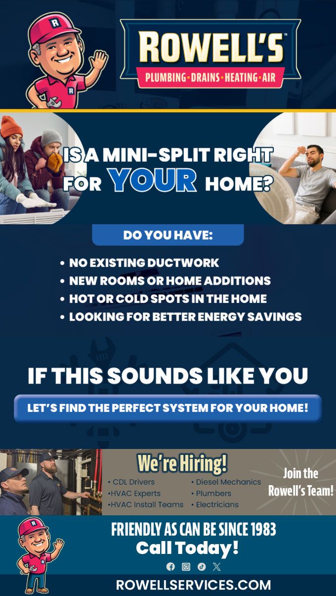 "Friendly As Can Be Since 1983!" When you need help with your plumbing, drains, heating, cooling or electrical in Carroll, you can always rely on Rowell's Services! Call us now or book online!